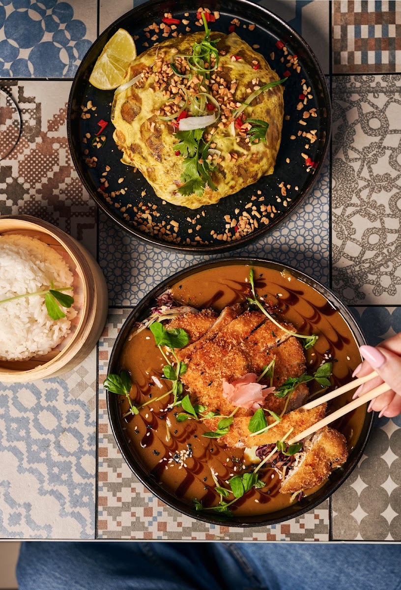 The menu proudly boasts a variety of offerings, with noodle soups taking center stage. Indulge in the warmth of the Fukuoka Tonkotsu Ramen featuring sliced pork belly and soy-seasoned egg, or opt for the fiery Singapore Laksa infused with a rich coconut broth. Another favorite is the Katsu Udon Soup, where panko chicken breast meets savory udon noodles, served with a perfectly cooked egg for that added richness. Each bowl is a flavorful adventure that leaves you wanting more.